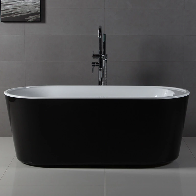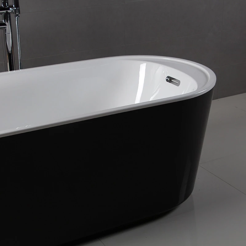 Baignoire îlot en acrylique extérieur noir et intérieur blanc, Como. Cette baignoire monocoque, est réalisée en acrylique renforcé par de la fibre de verre. Son design minimaliste à la forme ovale apportera de la modernité à votre salle de bain. Sa réalisation est soignée jusqu’au trop-plein, en effet ce dernier est chromé pour plus d’élégance. Vendu avec bonde et siphon. Robinet de baignoire à commander séparément. Dimensions : L159 x l75 x H58 cm