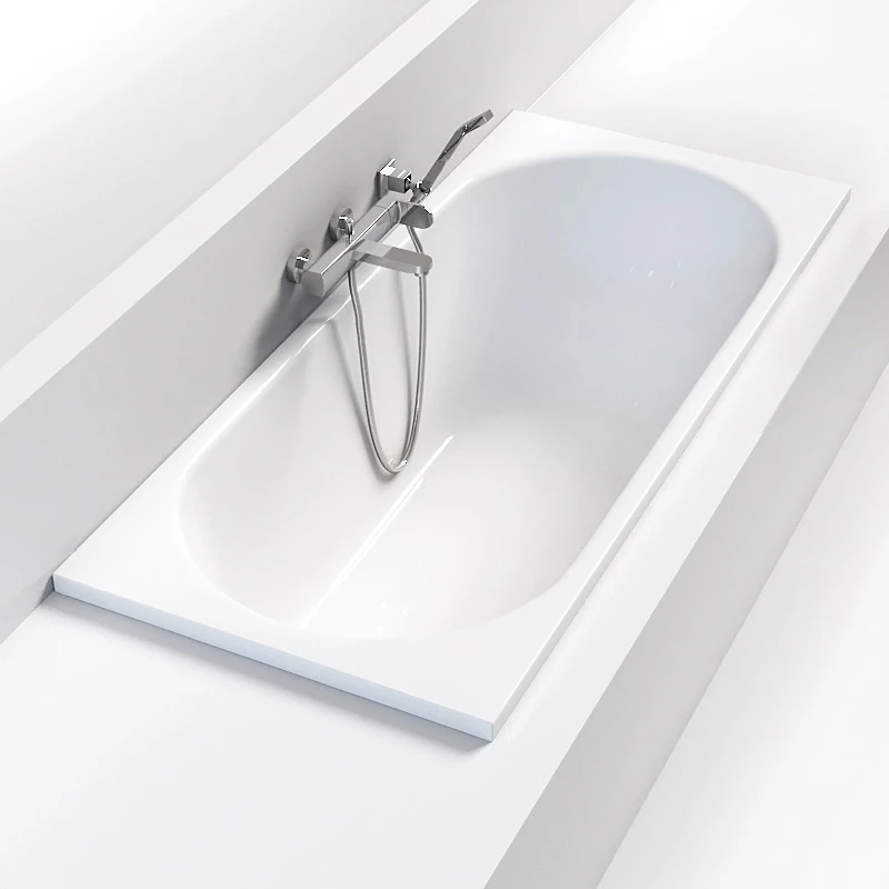 Baignoire en acrylique pour installation à encastrer. Design contemporain et minimaliste. Avec trop plein. Pieds de réglage inclus. Vidage à commander séparément.