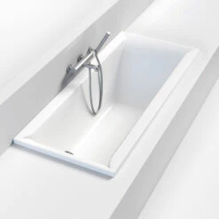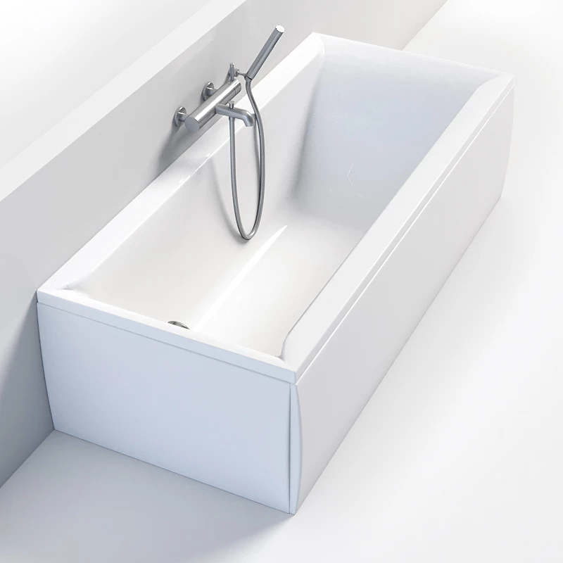 Baignoire en acrylique pour installation à encastrer. Design intemporel et minimaliste. Avec trop plein. Pieds de réglage inclus. Vidage à commander séparément.