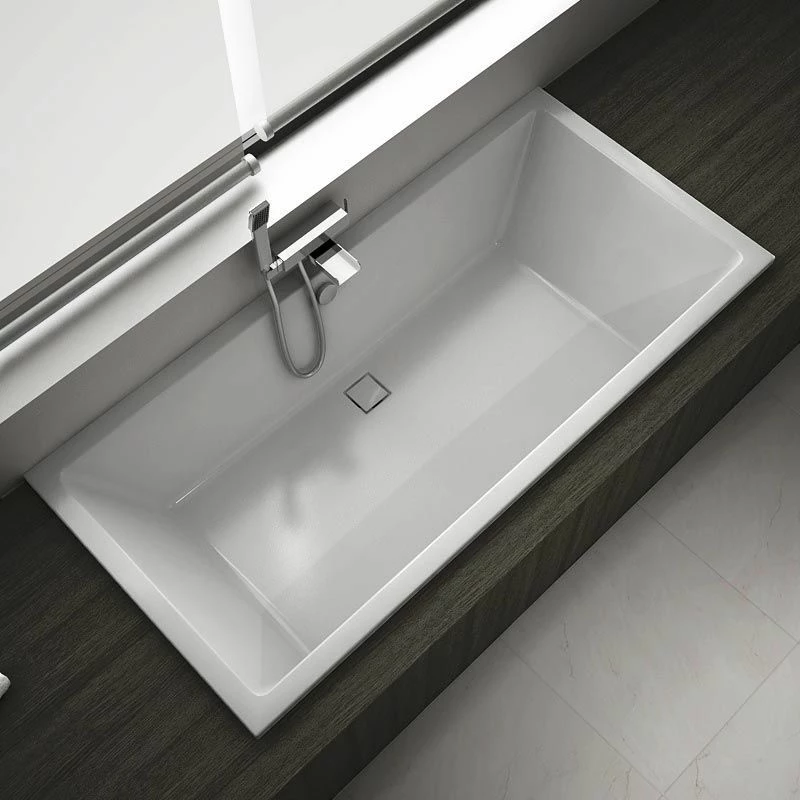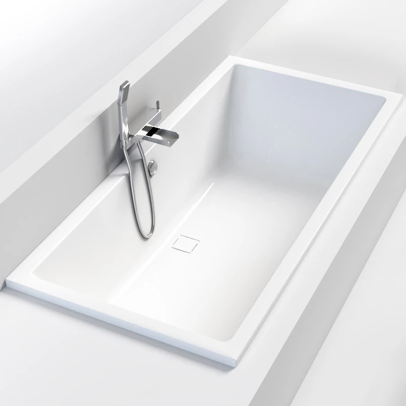 Baignoire en acrylique pour installation à encastrer. Avec trop plein. Facilité d’entretien. Pieds de réglage inclus (Hauteur : 13cm à 20cm). Tablier et vidage à commander séparément.