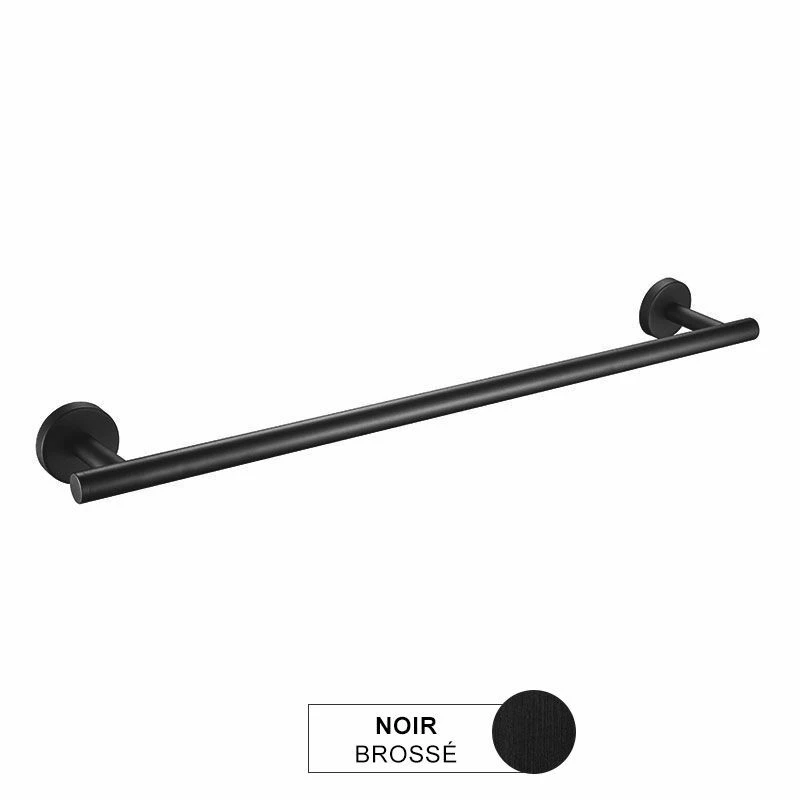 Barre porte-serviette murale en inox noir brossé, Châtelet. Son design minimaliste et son aspect brossé apporteront une touche de modernité dans tous les styles de salles de bain.