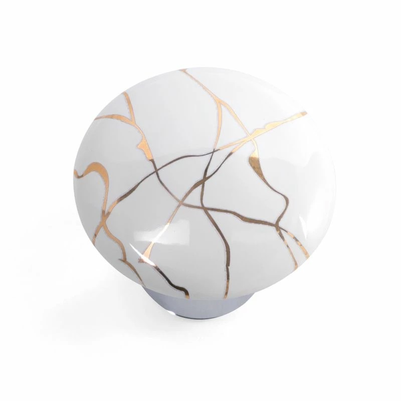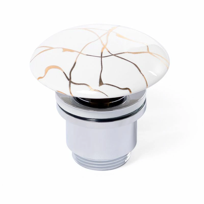 Bonde lavabo en laiton finition blanc brillant avec motif or