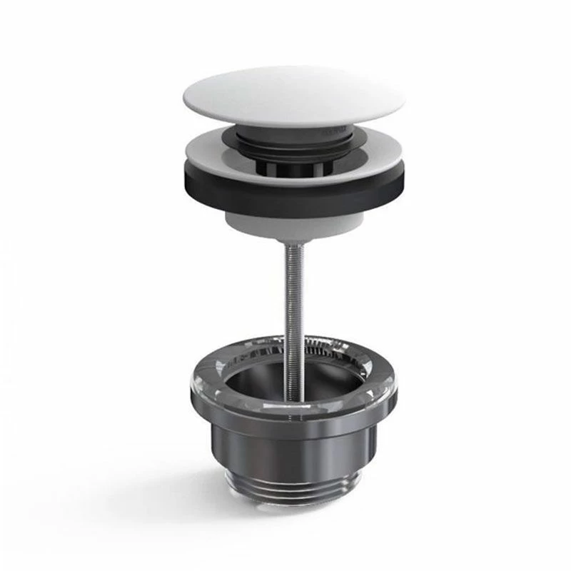 Bonde lavabo en laiton finition blanc mat universelle, clic/clac ou fixe. Cette bonde permet une installation en écoulement libre pour vasques sans trop plein, ou bien en clic-clac pour les vasques disposant du trop plein.