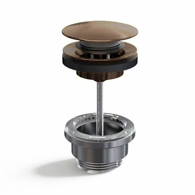 Bonde lavabo en laiton finition cuivré brossé universelle, clic/clac ou fixe. Cette bonde permet une installation en écoulement libre pour vasques sans trop plein, ou bien en clic-clac pour les vasques disposant du trop plein. Elle est idéale pour s’associer à notre série Châtelet.
