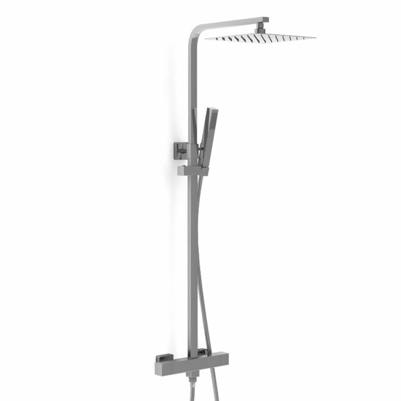 Tuileries II, la colonne de douche qui allie parfaitement design raffiné et look moderne. Finition chrome. Sa douche de tête, de 25×25 cm, dispose de picots en silicone empêchant l’adhérence du calcaire, tout comme sa douchette. La hauteur de la pomme de tête est réglable de 78 à 117 cm. L’entraxe, entre l’arrivée d’eau chaude et d’eau froide est de 15 cm. Inverseur “invisible” sous robinetterie, acier inoxydable. Cartouche progressive incluse.