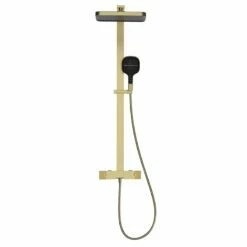 Cette colonne de douche, Concorde, est réalisée en laiton de haute qualité. Ses formes épurées et sa finition or mat en font l’équipement idéal d’une salle de bains de style industriel. La douchette, le support et le flexible en PVC or mat sont inclus.