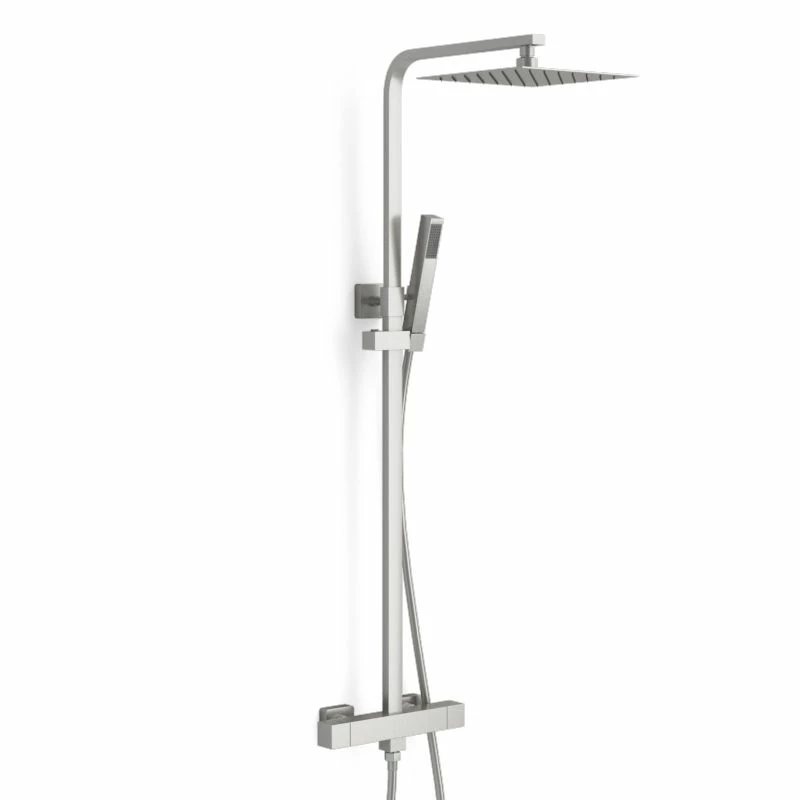 Tuileries II, la colonne de douche qui allie parfaitement design raffiné et look moderne. Finition inox brossé. Sa douche de tête, de 25×25 cm, dispose de picots en silicone empêchant l’adhérence du calcaire, tout comme sa douchette. La hauteur de la pomme de tête est réglable de 78 à 117 cm. L’entraxe, entre l’arrivée d’eau chaude et d’eau froide est de 15 cm. Inverseur “invisible” sous robinetterie, acier inoxydable. Cartouche progressive incluse.