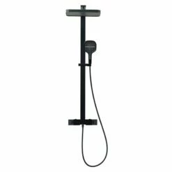 Cette colonne de douche, Concorde, est réalisée en laiton de haute qualité. Ses formes épurées et sa finition noir mat en font l’équipement idéal d’une salle de bains de style industriel. La douchette, le support et le flexible en PVC noir mat sont inclus.