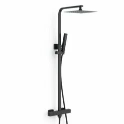 Tuileries II, la colonne de douche qui allie parfaitement design raffiné et look moderne. Finition Noir mat. Sa douche de tête, de 25×25 cm, dispose de picots en silicone empêchant l’adhérence du calcaire, tout comme sa douchette. La hauteur de la pomme de tête est réglable de 78 à 117 cm. L’entraxe, entre l’arrivée d’eau chaude et d’eau froide est de 15 cm. Inverseur “invisible” sous robinetterie, acier inoxydable. Cartouche progressive incluse.