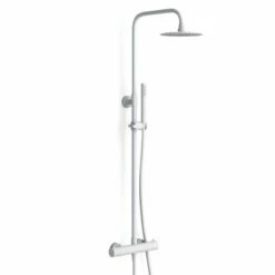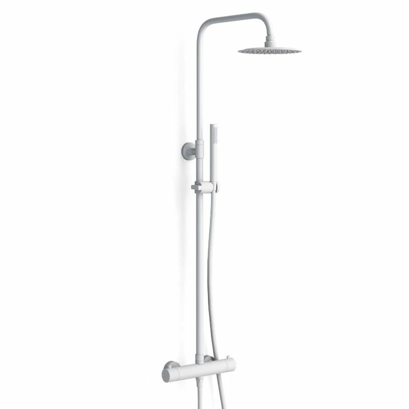 La colonne de douche thermostatique Châtelet III en acier inoxydable finition blanc mat allie finesse et lignes épurées. Ce robinet au design indémodable s’intègre dans une salle de bain moderne, contemporaine ou classique avec ses lignes courbes élégantes. La finition blanc mat apporte une touche de raffinement supplémentaire à ce modèle de robinetterie. Composition complète, avec flexible PVC, douchette et pomme de tête. Garantie 5 ans.