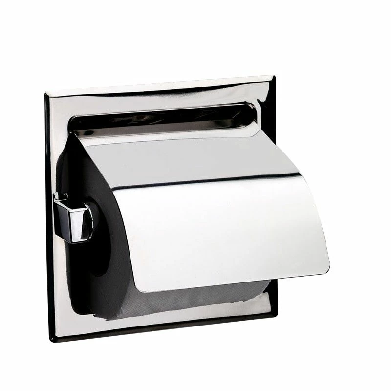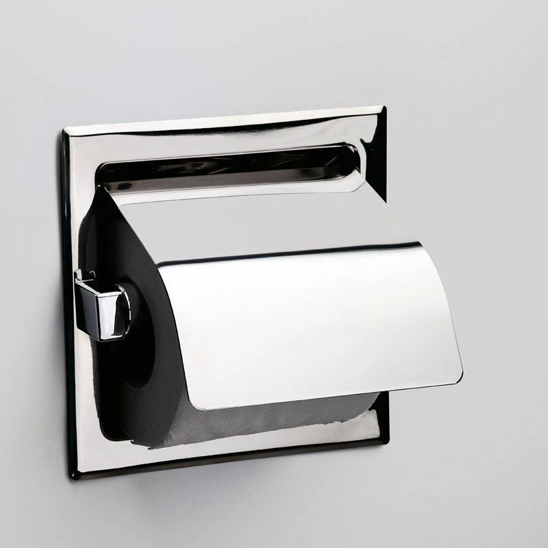 Salle de bain : Distributeur de papier à encastrer en acier inoxydable poli.