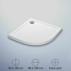 Receveur De Douche 80×80, 90×90 Ou 100×100 Cm Quart De Cercle, Acrylique, Bora