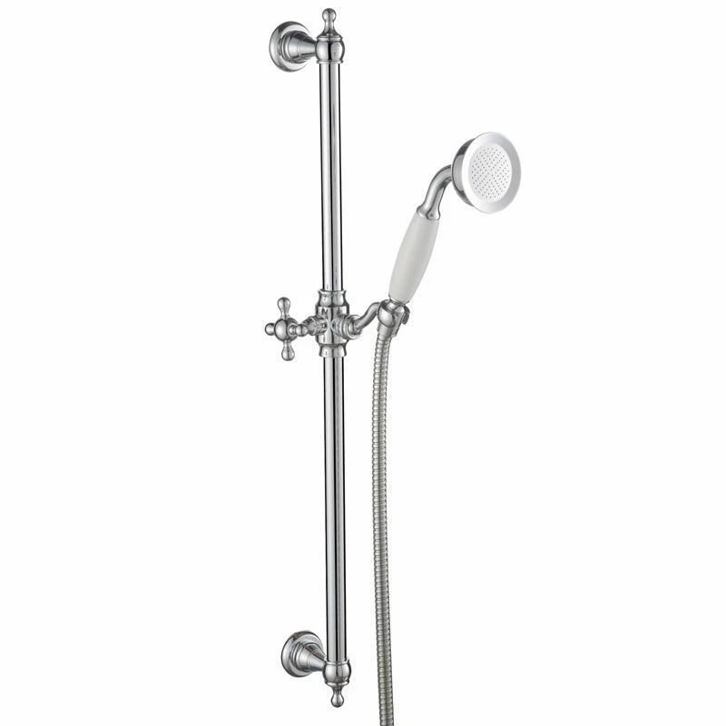 Set de douche complet Diana en laiton et finition chromée comprenant une douchette, une barre avec support de douchette mural et un flexible en inox.