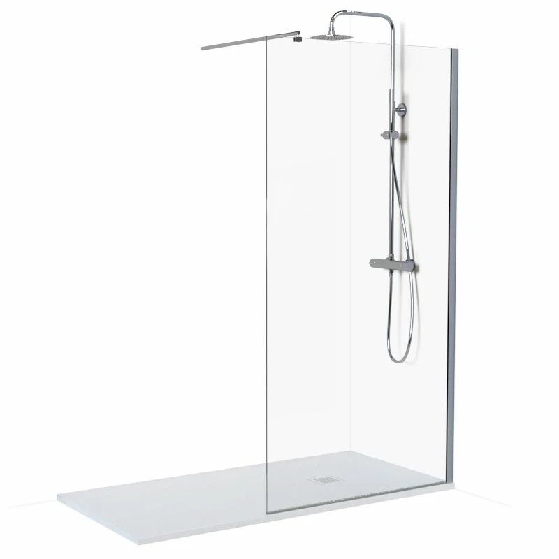 Ensemble complet, composé d’une paroi de douche fixe 100 cm avec profilés chromés Altea, d’un receveur blanc en résine minérale extra-plat Fjord 160×80 ou 160×90 cm et de la colonne de douche mitigeur Châtelet inox poli. La paroi est fabriquée en verre trempé Securit de 8mm, sa poignée et ses profilés sont en aluminium. Modèle réversible gauche ou droite. Extensibilité de 0 à 20mm. Hauteur : 195cm.