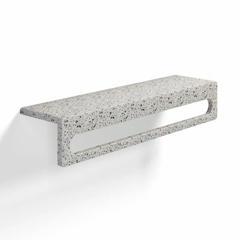 Étagère avec porte-serviettes intégré, en béton, coloris terrazzo blanc, T17. Cette tablette design de qualité donnera une touche résolument urbaine à votre pièce. Traitement hydrofuge et oléofuge. À compléter avec l’ensemble de la collection Série T.