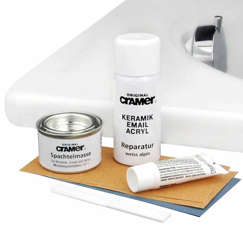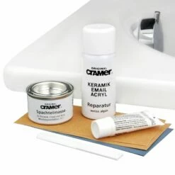 Fini les problèmes de rayures ou d’éclat sur votre baignoire ou receveur de douche. Ce kit de réparation inclus la peinture (Blanc Alpin), un durcisseur, un produit de finition et divers papier de verre. Fabriqué en Allemagne.