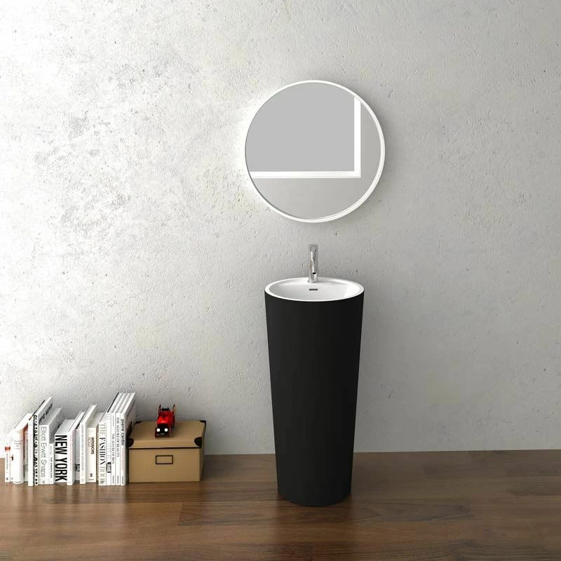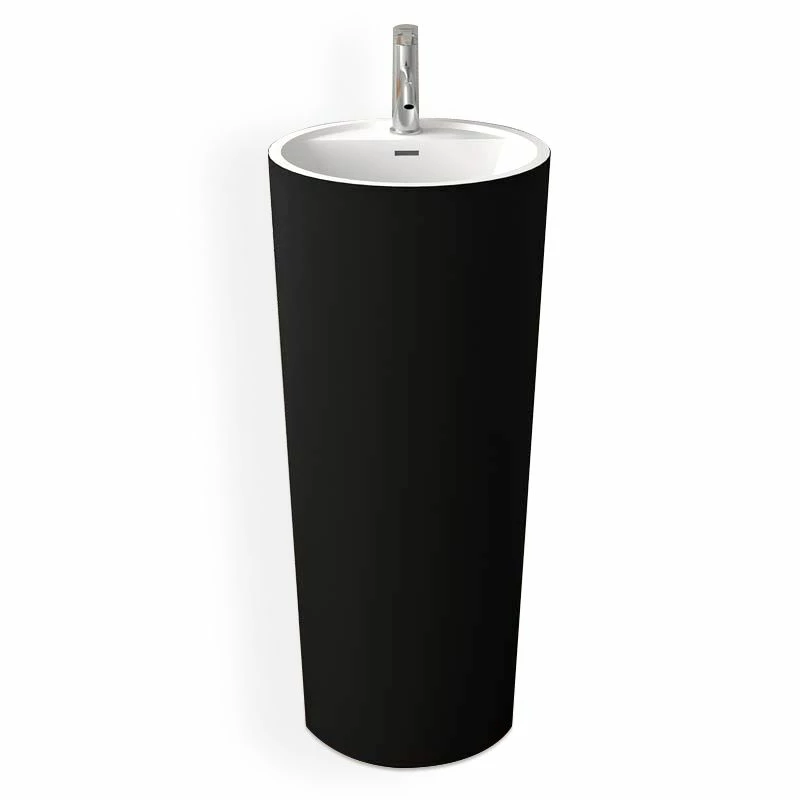 Ce lavabo à poser au sol est réalisé en Solid surface noir mat à l’extérieur et blanc mat à l’intérieur, une résine minérale au touché velouté, facile d’entretien et résistante aux rayures.Son design est résolument contemporain avec sa forme en fuseau. Pratique, ce lavabo dispose d’une plage de robinetterie et est équipé d’un trop plein. Bonde incluse. Siphon vendu séparément.
