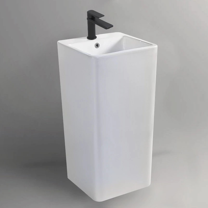 La vasque totem est un monobloc composé d’un piétement et d’une vasque, le tout assemblé en une seule pièce. Le lavabo colonne repose directement sur le sol par son poids et ne prévoit pas de fixation au mur. L’arrière du lavabo est pourvu de deux percements permettant de faire passer vos évacuations et alimentations par le mur.