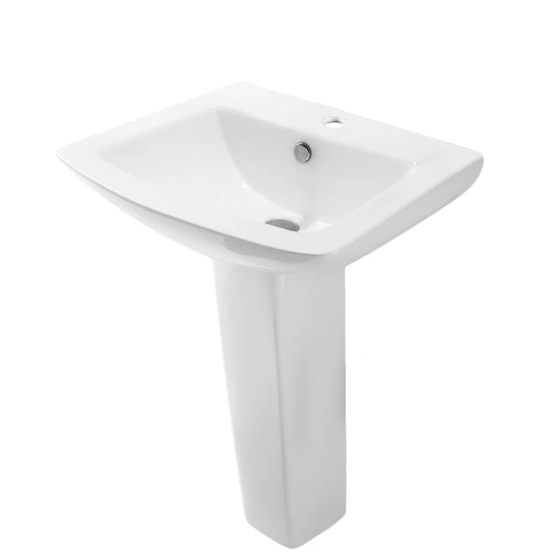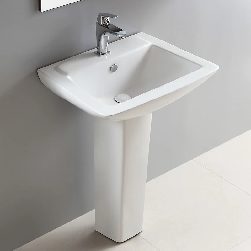 Lavabo colonne en céramique blanche, Pure. Ce lavabo à poser est réalisé en céramique avec traitement anti-bactérien pour un nettoyage et une hygiène optimale. Lavabo avec trop-plein. Percement monotrou sur plage de robinetterie. Ce lavabo sur pied est à placer contre un mur, le siphon est dissimulé par son pied. Dimensions : l.61 x P.47 x H.84 cm