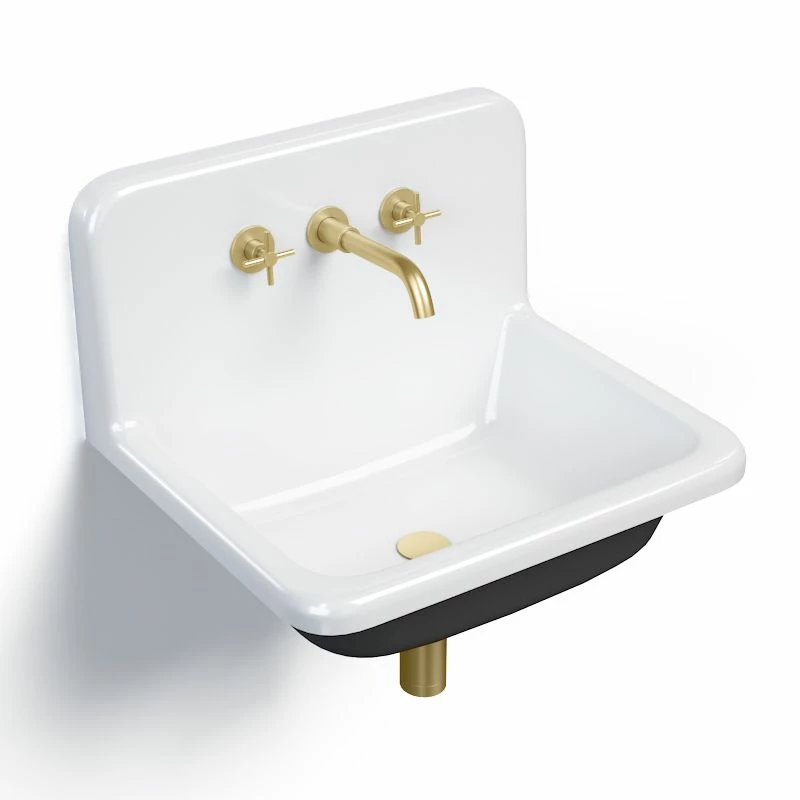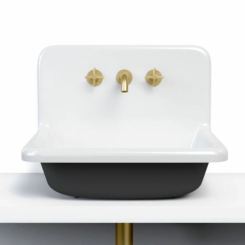 Lavabo en fonte émaillée, intérieur blanc et extérieur noir mat, School.