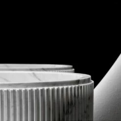 Ensemble Lavabo Tonneau, Robinet Au Sol, Miroir Et étagère, Marbre Blanc Et Doré Brossé, Kanda