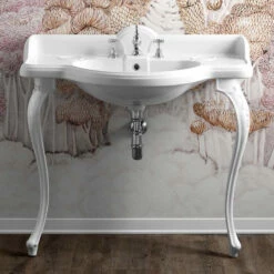 Lavabo Console Simple, 1 Trou, Pieds Doré Brossé, 81 Cm, 1920