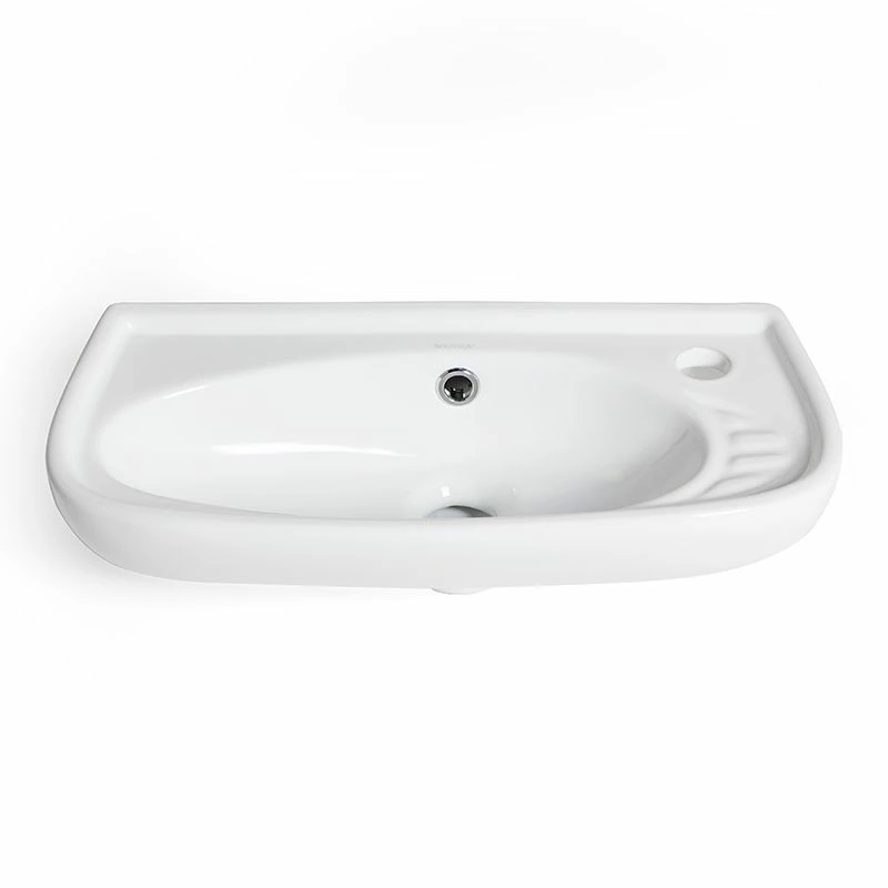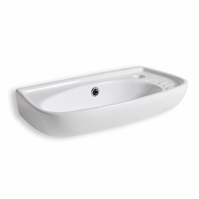 Ce lave-mains en céramique blanche s’intégrera harmonieusement dans tous les types de salle de bains ou toilettes. Avec trop-plein et percement de robinetterie.