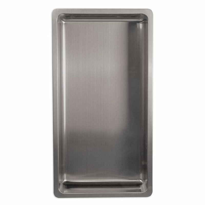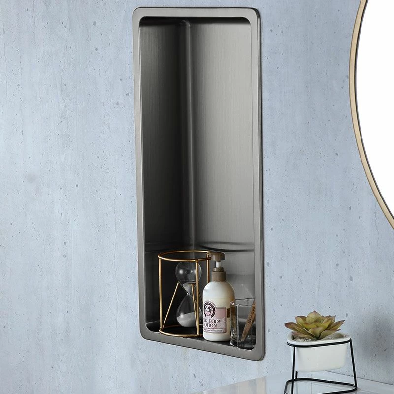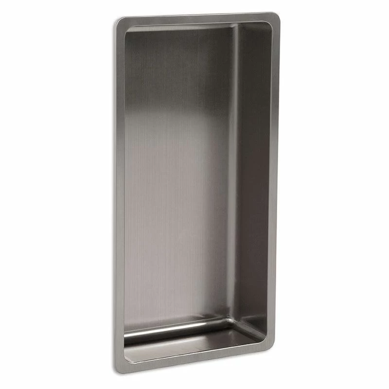 Niche murale encastrée en inox finition brossée, Châtelet, 60 x 30 cm. Cette niche, pour pose verticale ou horizontale, est idéale pour optimiser votre espace tout en ajoutant une touche hyper design à votre salle de bain. Elle apportera une note de modernité et d’élégance à votre espace. Réalisée en acier inoxydable, elle possède une grande résistance à la corrosion et à l’humidité.