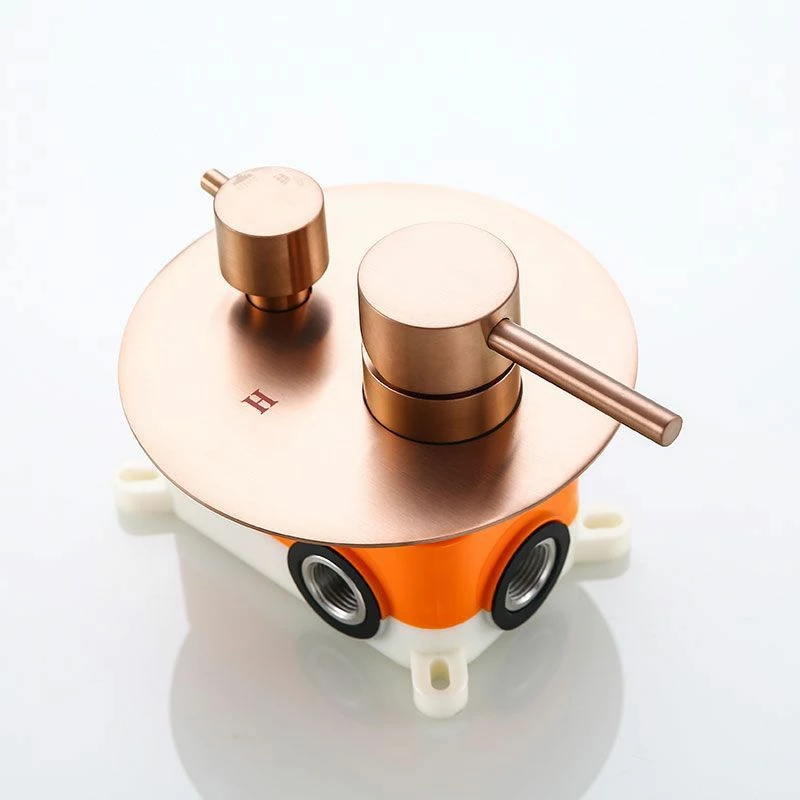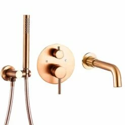 Composition bain/douche mitigeur encastré doré rose brossé, Châtelet. Ce pack contient un set de douche complet : douchette à main, flexible PVC et crochet avec prise d’eau, mitigeur avec inverseur 2 sorties et un bec de bain. Ce robinet au design indémodable s’intègre dans une salle de bain contemporaine ou classique avec ses lignes courbes élégantes. La finition brossée apporte par son côté mat une touche de raffinement supplémentaire à ce modèle de robinetterie. Garantie 5 ans.