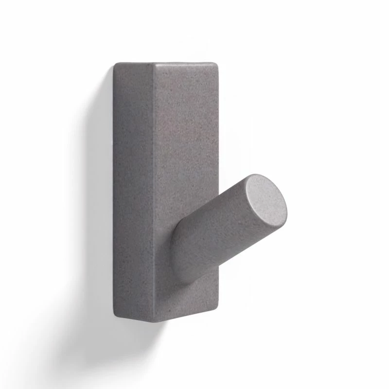 Patère en béton, finition gris ciment, T16. Avec sa forme clou, cette patère apportera une touche contemporaine et authentique à votre pièce d’eau. Disponible également en d’autres finitions.