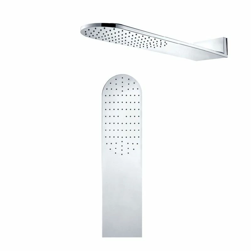 Tête de douche en laiton finition chromée. Partie arrière en acier inoxydable. Jet pluie. Buses en silicone pour l’anticalcaire.