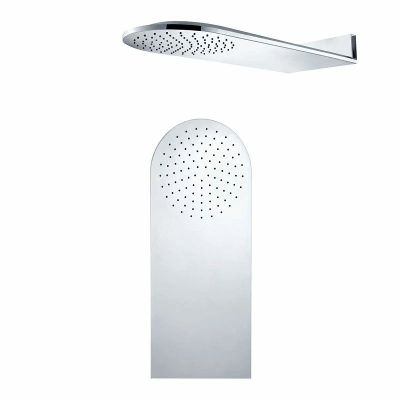 Tête de douche en laiton finition chromée. Partie arrière en acier inoxydable. Jet pluie. Buses en silicone pour l’anticalcaire.