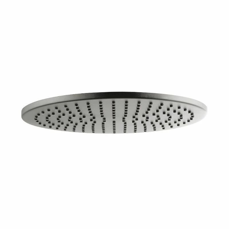 Douche de tête ronde Ø25 cm, en inox finition brossée, pour profiter d’un effet douche de pluie. À compléter avec un bras de douche plafond ou mural selon votre choix. Garantie 5 ans.