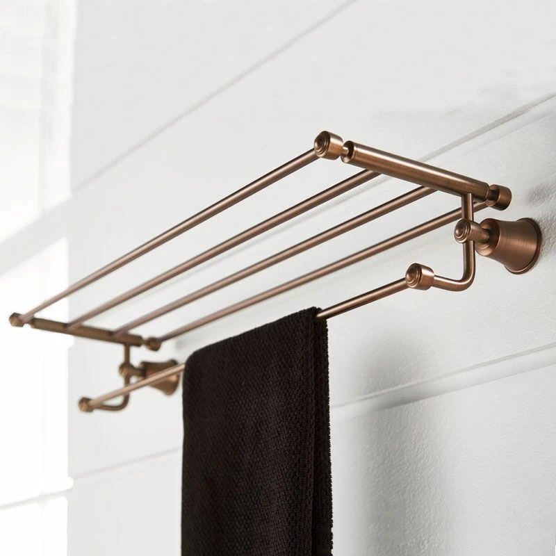 Vous êtes à la recherche d’une salle de bain à l’esprit vintage, industriel, rétro? Le Rack porte-serviettes Liberty saura conjuguer chic et fonctionnalité Ce produit est une garantie de qualité de par son corps en laiton et sa finition traitée cuivre. Vous pourrez déposer et étendre votre linge de bain tout en gagnant de la place grâce à sa suspension murale.