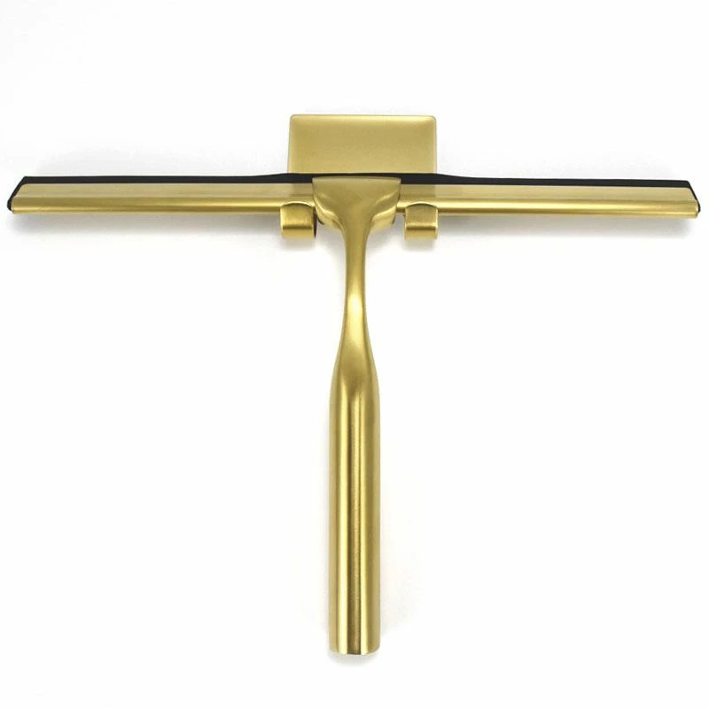Raclette essuie vitre Châtelet pour miroir et cabine de douche. Finition doré brossé. Largeur 16,9 cm. Fourni avec support mural (autocollant) et bande de remplacement. Dimensions : H16,9 X L25,1 cm. Garantie : 2 ans