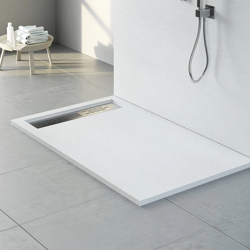 Le receveur de douche redécoupable blanc, Stone est idéal pour composer votre douche. De style contemporain, ce receveur de douche est pigmenté dans la masse et sa surface est antidérapante et antibactérienne. Ce modèle de receveur est parfait pour les formes de mur particulières. Caniveau de douche en inox lame incluse. Bonde vendue séparément (cf: produits complémentaires). Garantie 5 ans.