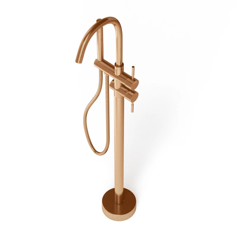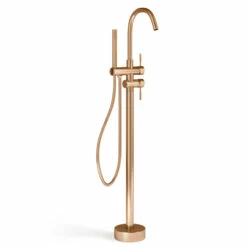 Le mitigeur de baignoire au sol Châtelet en inox allie finesse et lignes intemporelles. Ce robinet avec inverseur au design minimaliste est indémodable et s’intègre dans une salle de bain contemporaine ou classique avec ses lignes courbes élégantes. La finition doré rose brossé apporte, de par son aspect mat, une touche de raffinement supplémentaire à ce modèle de robinetterie. Fourni avec une cartouche céramique. Flexible PVC. Garantie 5 ans.