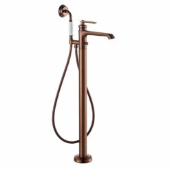Ce robinet de bain mitigeur Liberty en laiton et finition traitée cuivre accompagné de sa douchette s’inspire du style rétro grâce à ses courbes des années 30. Pour installation à poser au sol. Economie d’eau garantie grâce à sa cartouche céramique Kerox, garantie 5 ans.