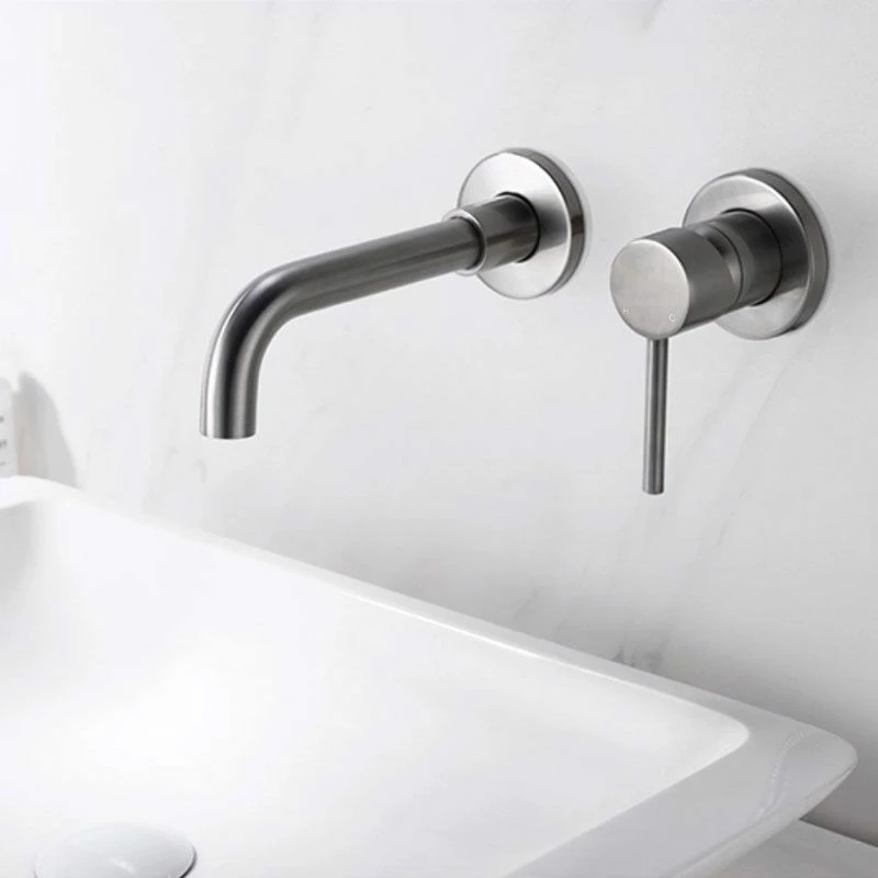 Robinet mural en inox brossé pour lavabo et vasque Châtelet. Design contemporain et minimaliste avec sa monocommande fine et son bec recourbé. Cartouche céramique, mousseur Neoperl pour réaliser des économies d’eau intégré au robinet. Garantie 5 ans. Corps d’encastrement inclus.