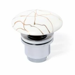 Bonde Lavabo Clic-clac Ou Fixe, Finition Blanc Brillant Avec Motif Or