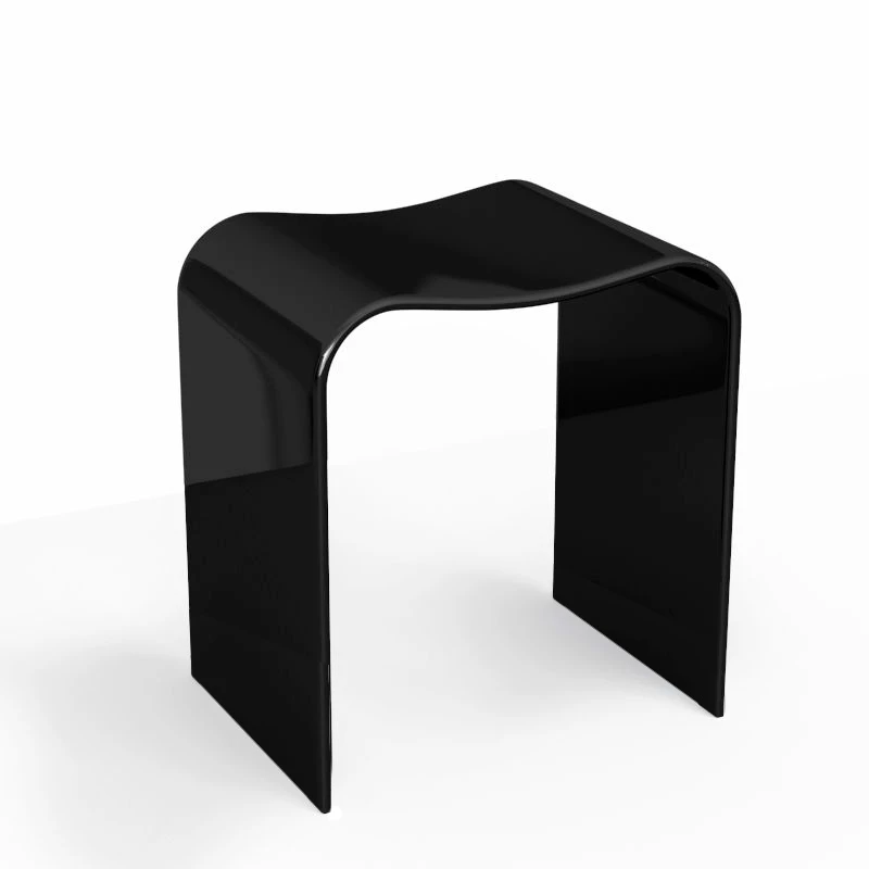 Tabouret de salle de bains en acrylique noir. En plus de son design moderne et élégant, il est totalement étanche et peut ainsi être utilisé sous la douche. Dimensions : 40x30x43cm.