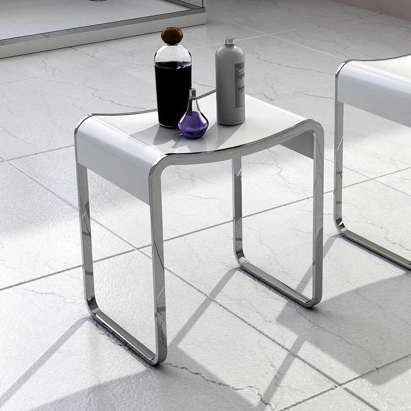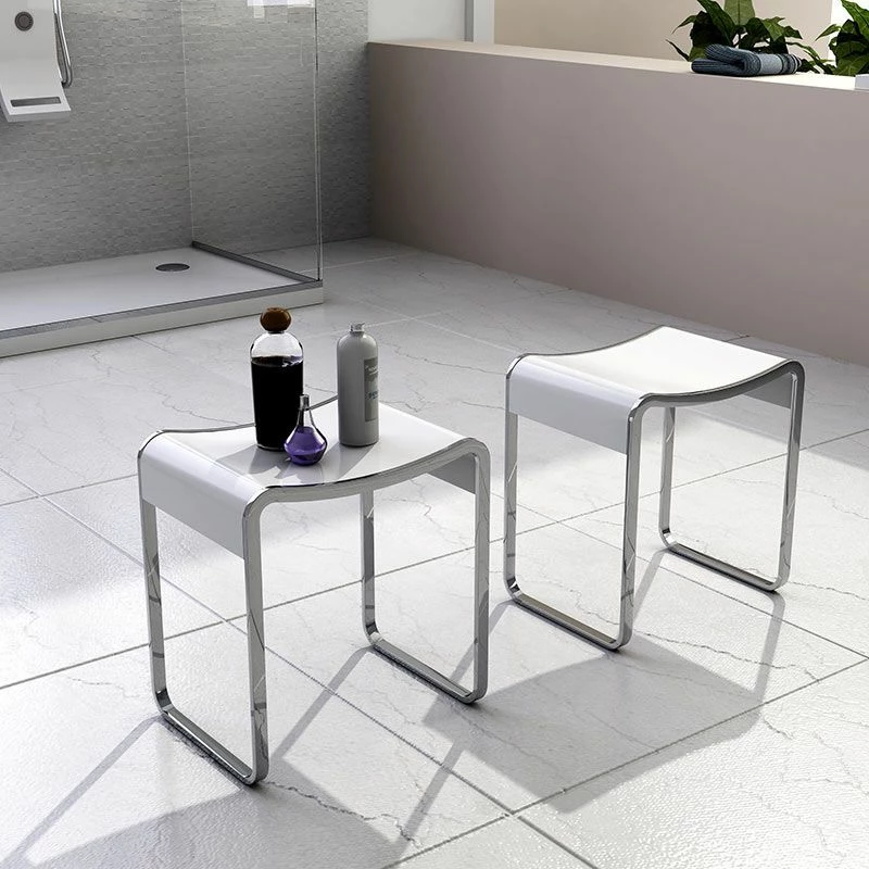 Le tabouret de salle de bain Curve est composé d’une structure en métal chromé et d ‘une assise en Solid Surface, une résine minérale au touché velouté, facile d’entretien et résistante aux rayures. Dimensions : 40x30x43cm