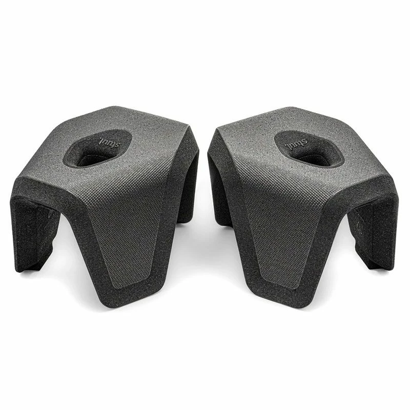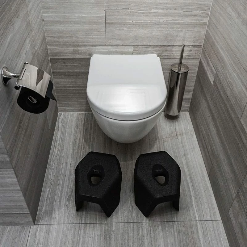 Tabourets physiologiques emboîtables, Noir, Stuul, au design innovant. Moderne et discret à la fois, cet ensemble de tabourets aux vertus curatives a été conçu pour adopter la position accroupie naturelle et lutter contre les différents malaises intestinaux. Doux au toucher, léger, simple d’entretien, cet objet pratique devient déco et indispensable.