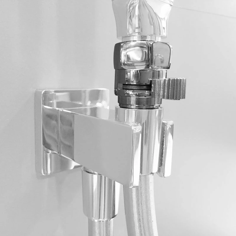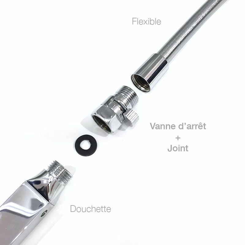 Vanne d’arrêt en laiton pour pommeau de douche. Finition chromée.