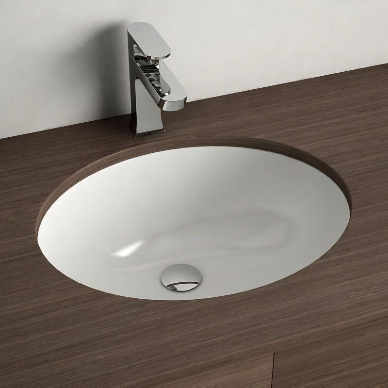 Vasque à encastrer par dessous en céramique de qualité, blanche. Design contemporain. Entretien facile. Avec trop-plein, cette vasque pourra être associée à une bonde à clapet fixe ou clic-clac. Dimensions : 48,7×39,1 cm. Dimensions intérieures: ≈43×36 cm. Attention pour les vasques à encastrer par le dessous, il peut y avoir une légère variation des dimensions. Seuil de tolérance: +/- 5 mm. Nous vous recommandons d’attendre la réception du produit avant de percer le plan.