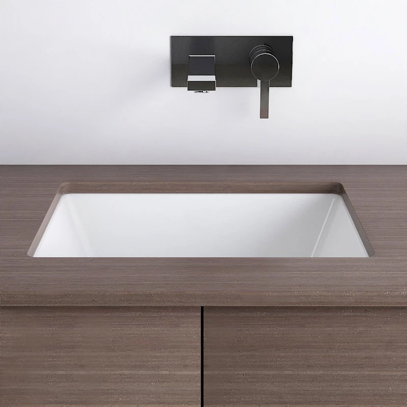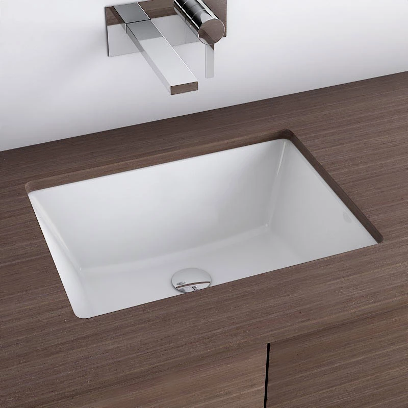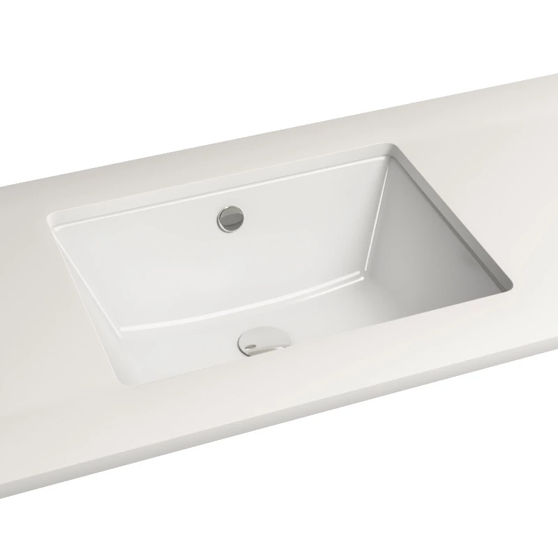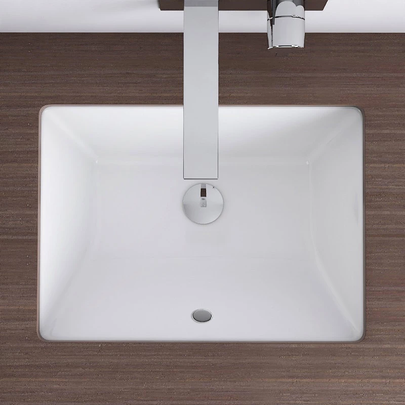 Vasque rectangulaire à encastrer par dessous en céramique blanche de qualité. Très esthétique, elle apportera un style très moderne à votre salle de bains. Elle doit être insérée dans un plan ou un meuble. Avec trop-plein couvercle chromé, à compléter avec une bonde à clapet fixe ou clic-clac.