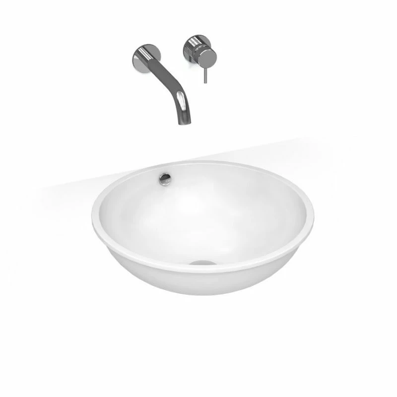 Vasque à encastrer par dessous en céramique de qualité, blanche. Design contemporain. Avec trop-plein et cache chromé. Entretien facile. Dimensions : 43×43 cm. Dimensions intérieures: ≈38 cm. Attention pour les vasques à encastrer par le dessous, il peut y avoir une légère variation des dimensions. Seuil de tolérance: +/- 8 mm. Nous vous recommandons d’attendre la réception du produit avant de percer le plan.