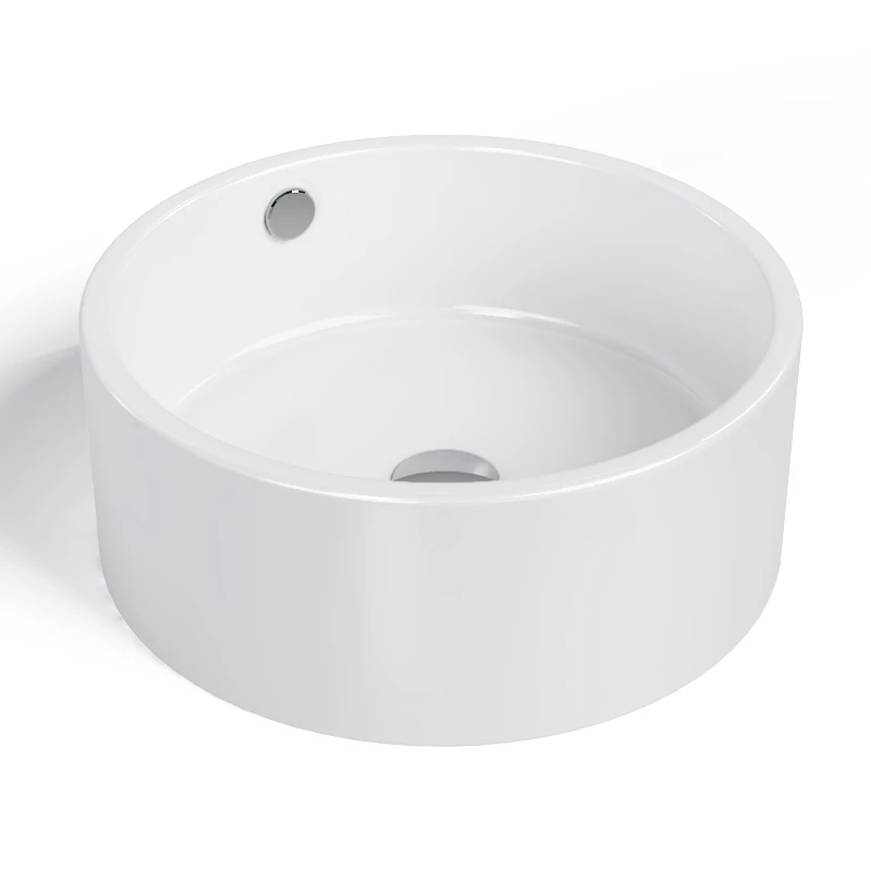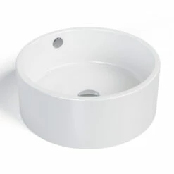Vasque à poser ronde en céramique. Avec trop-plein et cache chromé intégré. Design moderne et qualité.