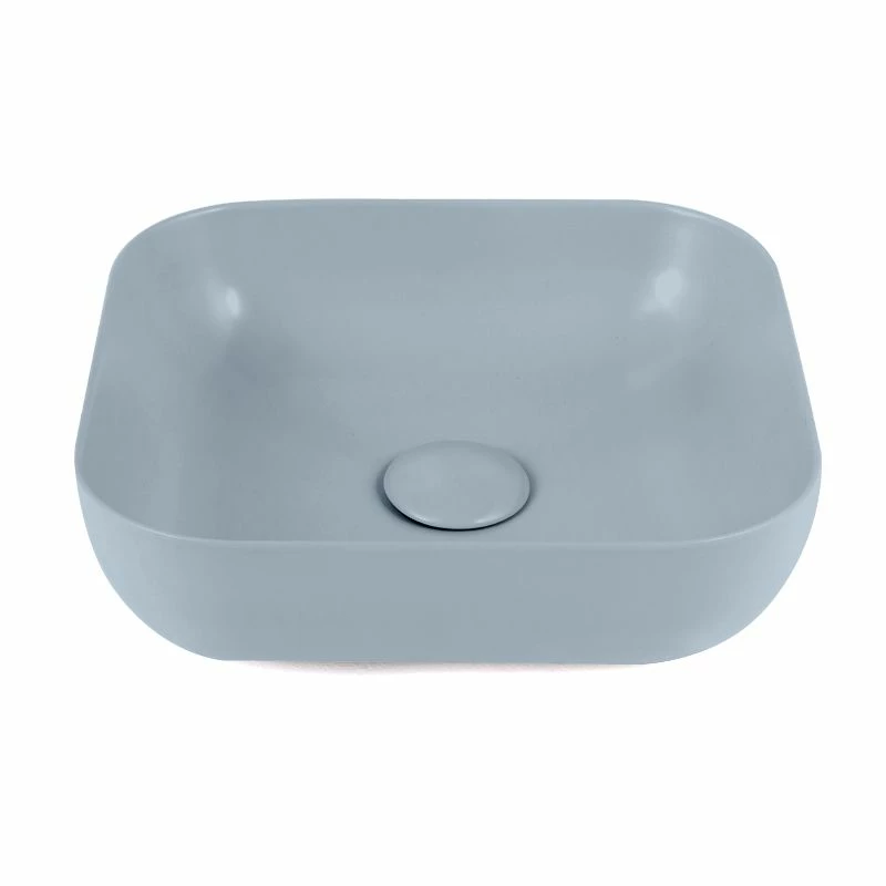 Vasque de salle de bain en céramique, carrée, Bleu mat. La collection céramique de Desvres : le savoir-faire artisanal d’excellence. Design contemporain, minimaliste et élégant. Matériau résistant, durable et imperméable. Facile à poser.