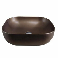 Vasque en céramique rectangulaire à poser, coloris bronze. Cette vasque en céramique avec ses bords arrondis et son coloris bronze et finition mate est du plus bel effet. Elle sera parfaite dans un intérieur à l’ambiance rétro chic, bohème ou zen. Sans trop-plein, à compléter avec une bonde à clapet fixe. Dimensions : L49 x l40x H15 cm.